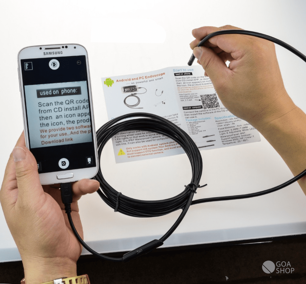 1. Em telefones android: escaneie o código QR no manual para instalar o aplicativo ou a partir de cd, instale o aplicativo ou vá para baixar o link para instalar o aplicativo, em seguida, um ícone aparece na área de trabalho móvel, clique no ícone, o produto está disponível para usar. É muito fácil operar este endoscópio android, basta baixar um aplicativo e inserir o endoscópio em seu dispositivo, o aplicativo irá reconhecer automaticamente.