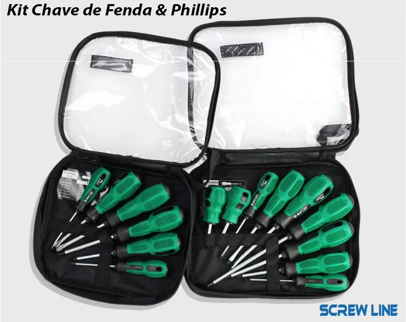 Screw Line™️ - Kit Chave de Fenda e Phillips Profissional 9 peças